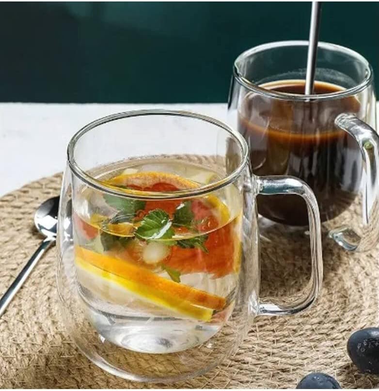 - تصميم مزدوج الجدار لعزل أفضل للحرارة يحافظ على سخونة أو برودة المشروبات لمدة أطول يقلل سخونة السطح الخارجي لراحة اليد مناسب للنسكافيه، القهوة، الشاي ومختلف المشروبات زجاج شفاف عالي الجودة بتصميم أنيق سهل التنظيف ومناسب للاستخدام اليومي مثالي للمنزل أو المكتب