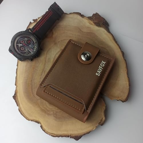 Generic - محفظة جلد رجالي وحامل بطاقات شبابي محفظة فاخر قابله للطي تصميم عصري محفظة رجاليه متعددة الاستخدام كلاسيكي ثنائي للطي مع مشبك معدني مغناطيسي (هافان)
