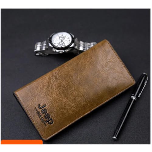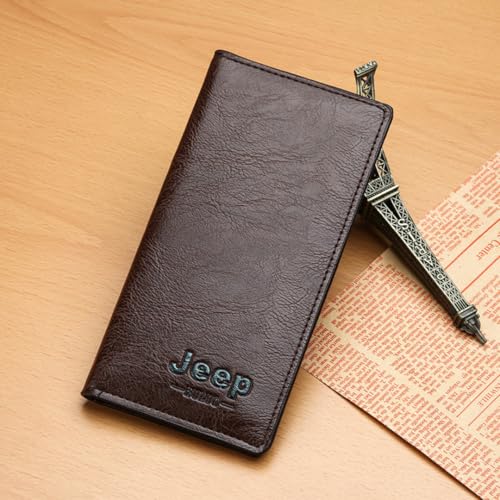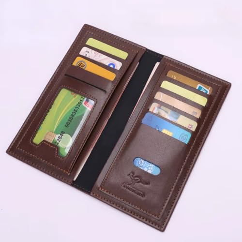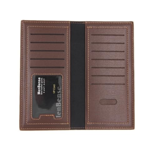 generic - محفظة رجالية جلد طويلة ثنائية الطي – لون بني غامق كلاسيكي