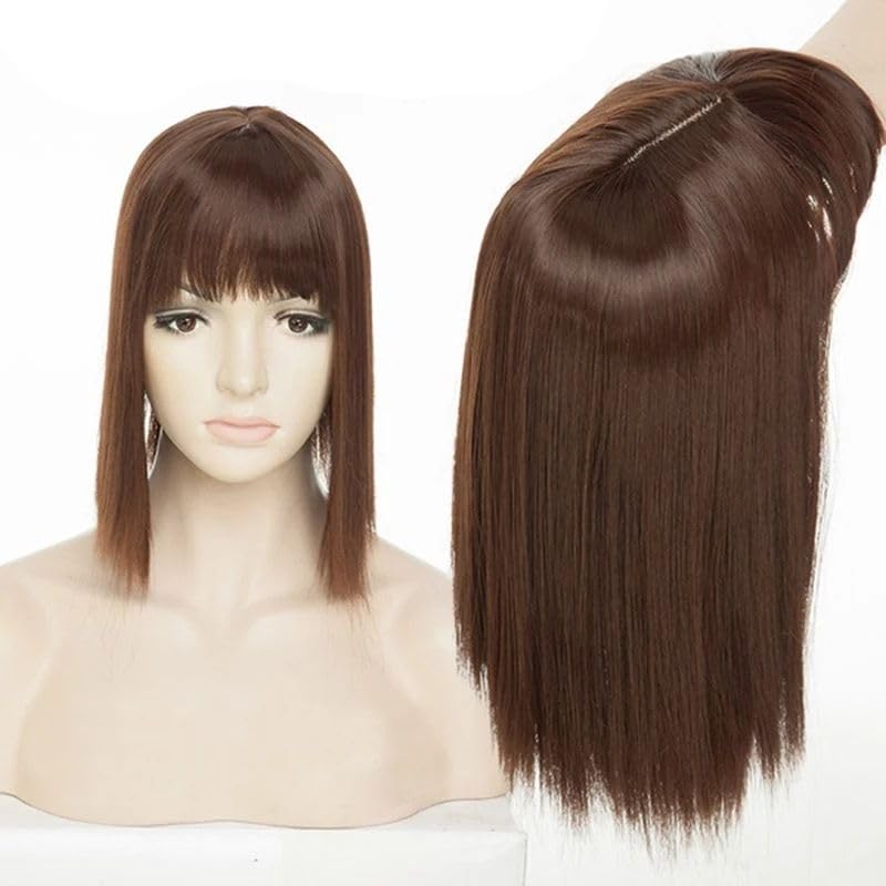Generic - باروكه شعر مستعار حراري مصنوع من الفايبر باللون البني الفاتح مع غره اماميه قصيره