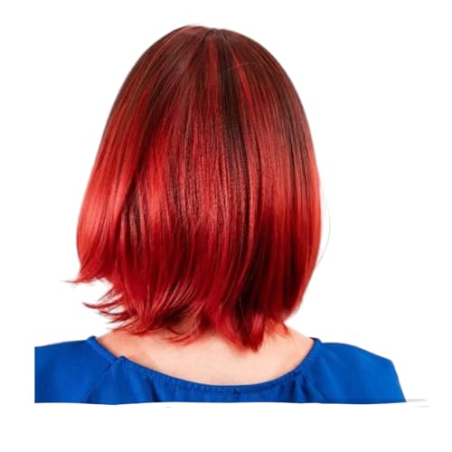 Generic - مستعار شعر مستعار باللون الأحمر لامع مع جذور سوداء مصنوعة من ألياف صناعية ألياف حراري بلون جديد عصري يعطي شكل مختلفة غير التقليدية مناسب للارتداء في المناسبات الخاصة به