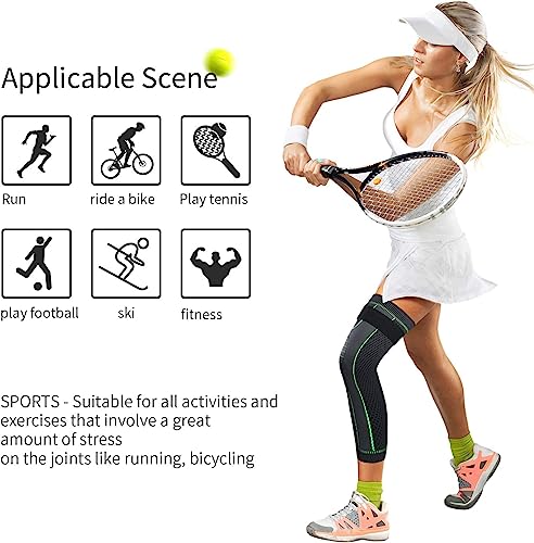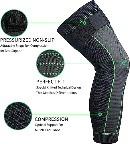 Generic - مشد رياضى و دعامة لكف اليد و المعصم و الكوع عالى المرونة و مزودة بمسامات للتهوية من نسيج ثلاثي الابعاد مضغوط , للياقة البدنية واليوغا ورفع الاثقال وصالة الالعاب الرياضية (ركبة طويلة بمشد)، نسيج ليكرا