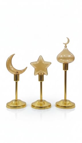 Generic - مصباح طاولة ليد معدن لون ذهبى لاسلكي بنمط ديكور رمضان على شكل القمر و النجوم ديكور غرفة النوم وغرفة الطعام وغرفة المعيشة خمات عالية الجوده