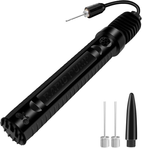 - 5️⃣ مجموعة شاملة من الإبر والمحولات: تأتي المضخة مزودة بإبر معدني قوي ومحول صمام واحد لملاءمة مختلف أنواع الكرات والمعدات، بالإضافة إلى خرطوم مرن قابل للتمديد يمنحك سهولة أكبر أثناء النفخ. يقلل هذا التصميم العملي الضغط على الإبرة ويمنع انحناءها أو تلفها، مما يطيل عمر الاستخدام ويحافظ على الأداء العالي.