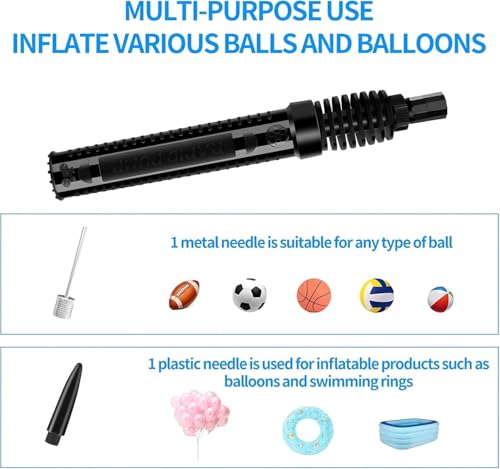 Generic - مضخة هواء يدوية مزدوجة العمل – مضخة كرة محمولة مع إبر ومحول صمام نفخ سريع، مناسبة لكرة القدم وكرة السلة والكرة الطائرة والدراجات والبالونات وعوامات السباحة القابلة للنفخ (اسود)