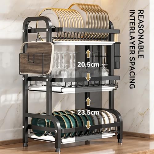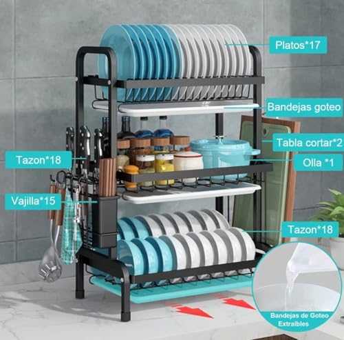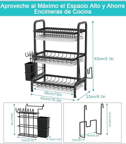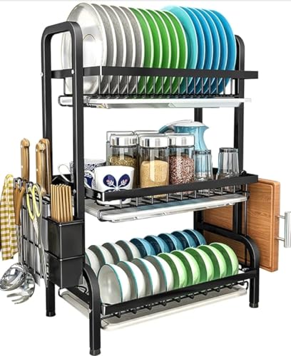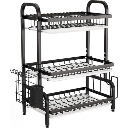 عام - مطبقية أطباق فوق الحوض متعددة المستويات – لتجفيف وتنظيم الصحون وأدوات المطبخ، مقاومة للصدأ وقابلة للتعديل لتوفير المساحة – تصميم عصري للمطبخ