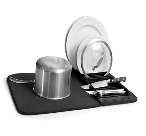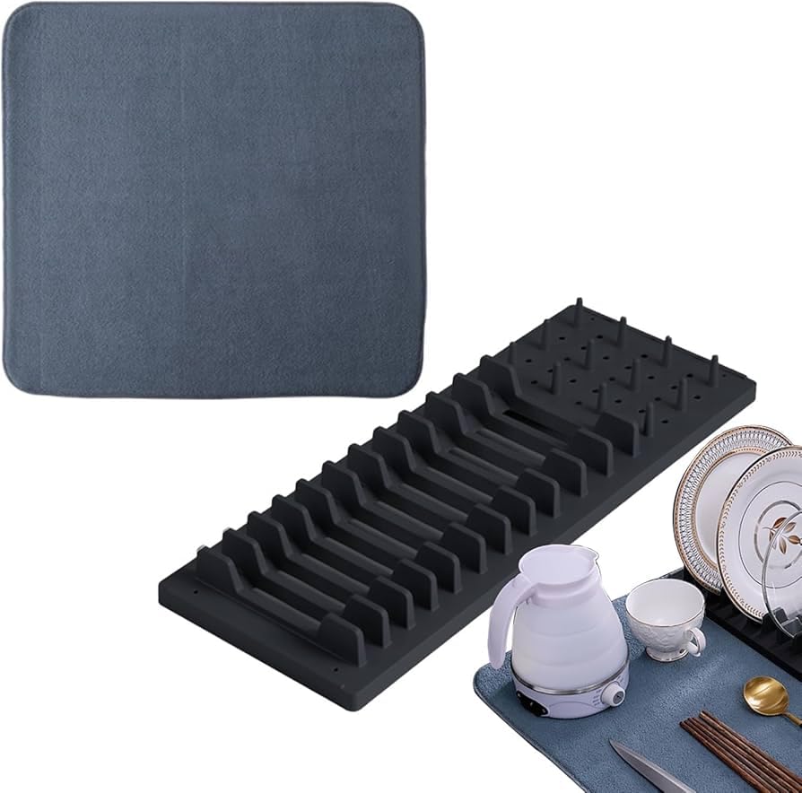 Generic - مطبقية وممنشفة مواعين منشفة موأين +مطبقية فيها مكان للالأطباق وممكان للأكواب هي أرضية تجفيف لأدوات المطبخ خامة ميكروفايبر تليلة لأول مرة معاها ملحقات منظم الألوان - اسود