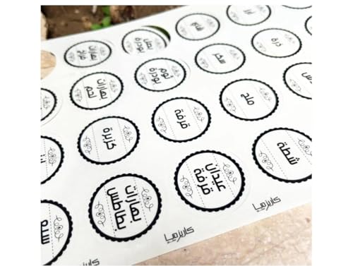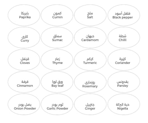 Generic - ملصقات لاصقة بتصميم دائري للتوابل مقاومة للماء عربي انجليزي