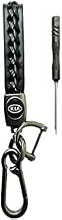Generic - ميدالية وسلسلة مفاتيح سيارة من الجلد وحلقات معدن مناسبة لمفاتيح السيارة والدراجات النارية ومفاتيح العائلة - متوافقة مع كي*ا أسود من لوكي بوي