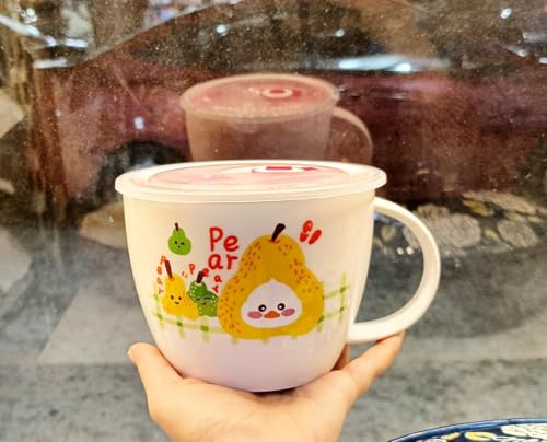 Generic - وعاء حساء سيراميك مع غطاء، تصميم فاكهة ودب مزخرف