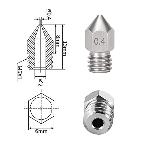 Generic - فوهة طباعة للطابعة الثلاثية الأبعاد - مقاس 0.4 ملم (ستانلس ستيل )