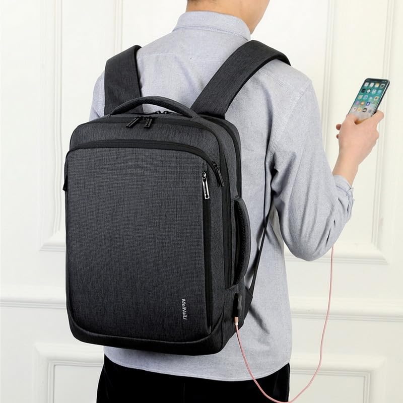 Generic - حقيبة ظهر 023 بمنفذ شحن USB 15.6 بوصة للاب توب والاعمال مقاومة للماء متعددة الوظائف للسفر لون اسود