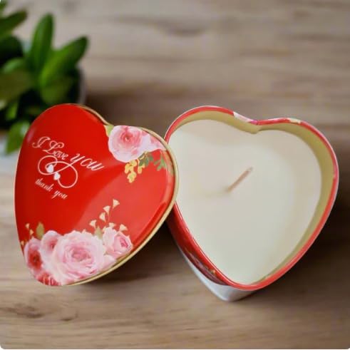 Generic - شمعة معطرة داخل علبة معدنية على شكل قلب بغطاء محكم، شمع عالي الجودة برائحة هادئة، مناسبة للاسترخاء وتزيين المنزل، هدية انيقة للاستخدام اليومي (1، 004)