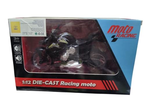 Generic - 1:12 Die-Cast Racing Motorcycle Model with Lights and Sound, Black, Ages 3+