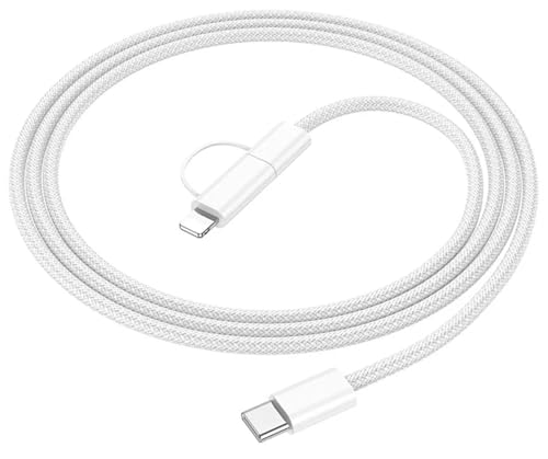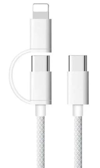 Generic - KM Technology Cable Braided 2 in 1 Type C To Type-C + ios 8 pin, 60W PD ultra Super fast charging, 1 meter, white