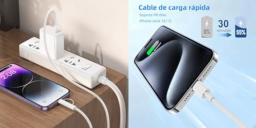 - With the included ios 8 pin adapter, you can easily convert one of the USB-C ends to a ios 8 pin connector, allowing you to also charge compatible with Apple devices such as iPhones and iPads, Samsung,