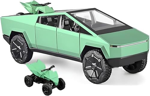 Generic - 1:24 Scale Diecast Metal Car Cyber Truck Model with Metal Doors, Lights and Sound - with Cyber Quad Bike - Zinc Alloy Kids Toy Gift for Boys and Girls (Green)