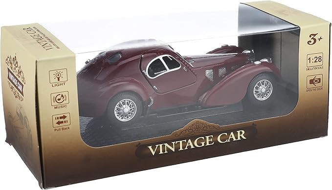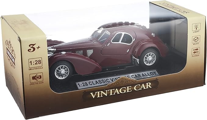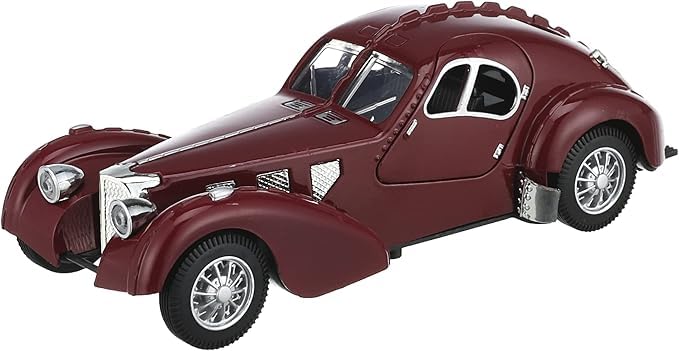 - نموذج سيارة كلاسيكي عتيق معدني بمقياس 1:28 بتصميم سيارة بوجاتي 1936 مع ضوء وصوت للألعاب والهدايا وهواة للتجميع - (لون نبيتي)