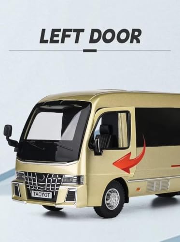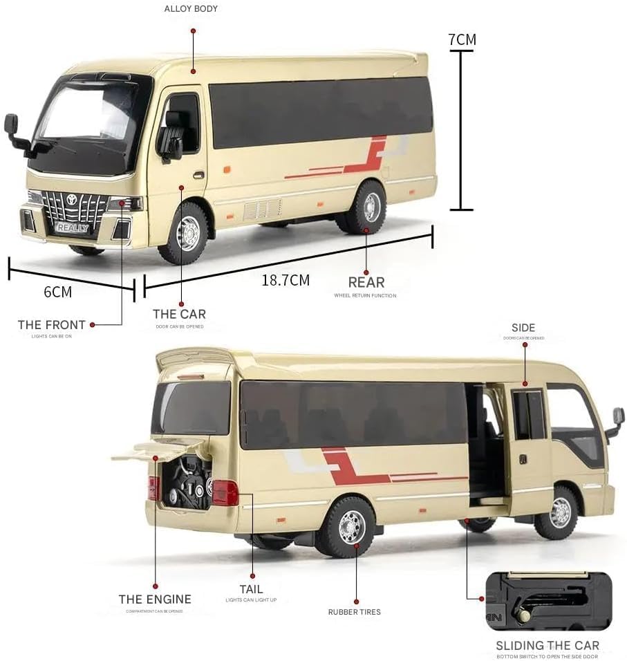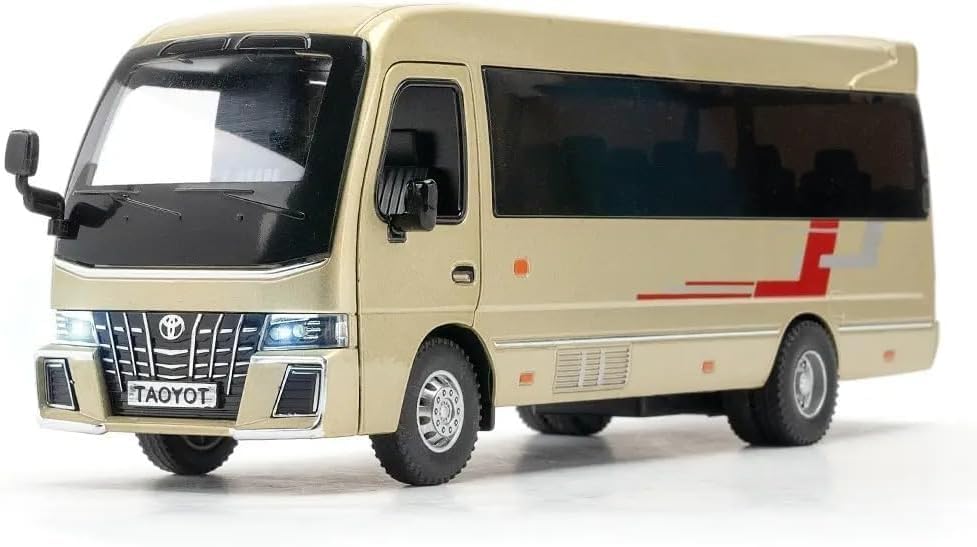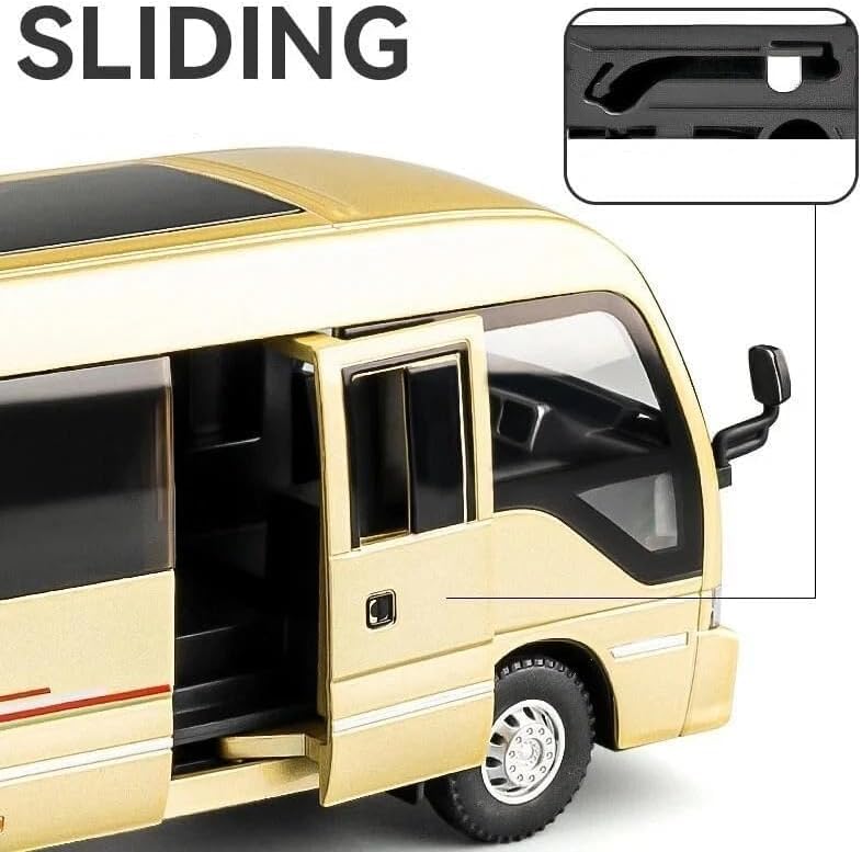 Generic - 1.32 Scale Toyo ta Coaster Bus Exclusive Alloy Metal Pull Back Model with Sound Light Mini Toy for Kids Metal Model Toy with Sound and Light. (gold)