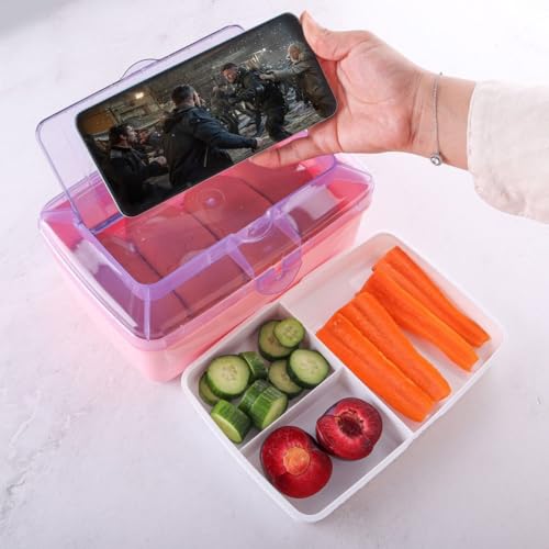 Generic - لانش بوكس متعدد الوظائف سعة 1.5 لتر مع حامل موبايل مدمج، صندوق بينتو مانع للتسرب للوجبات الخفيفة والوجبات والترفيه، أزرق