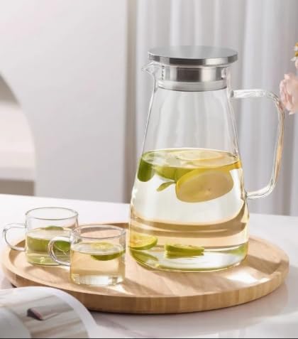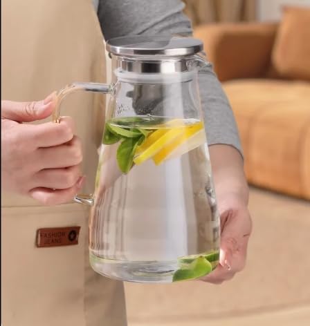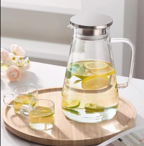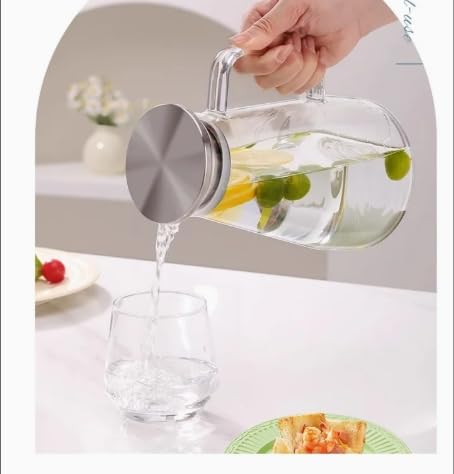 Generic - 1.8L Clear Glass Jug with Stainless Steel Lid - Serving Water and Juice