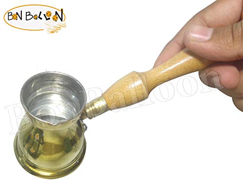 - 1 وعاء نحاسي نحاسي ابريك بريكي لتحضير القهوة التركية اليونانية جازفا سيزف جيزف التركية التركية ارارات العربية العربية مع مقبض خشبي، إبريق مصري مطروق يدويا مقاس رقم 2 (2 كوب) (2.7 اونصة/80 مل)