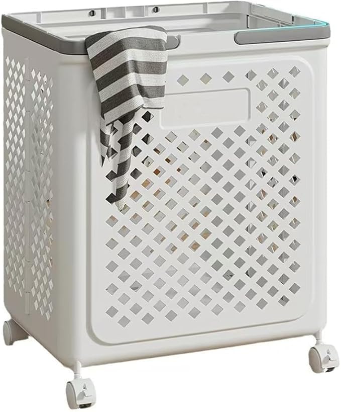 Generic - 1 Large Laundry Basket, with Wheels Laundry Hamper Large Capacity Foldable Laundry Basket, Multi Functional Organizerused for bathroom, balcony, and home tidying (white)