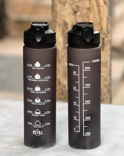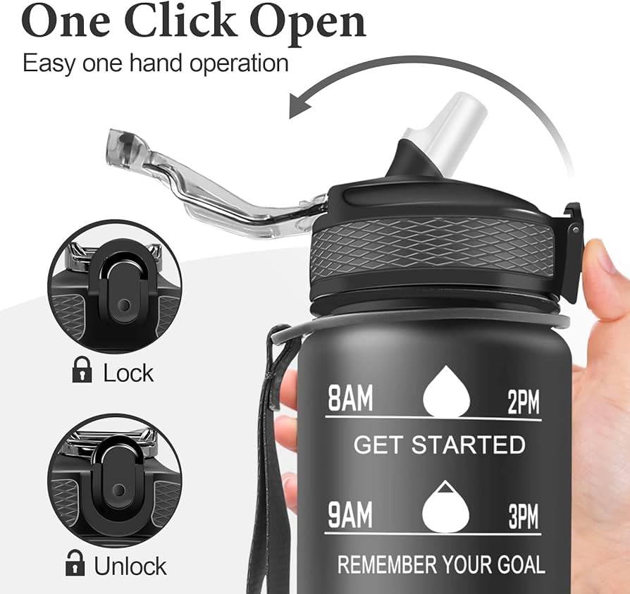 Generic - 1 Liter Graduated Water Bottle - Gym Outdoor Summer Water Bottle - Modern Design High Quality Material with Lock Button and Open (R)