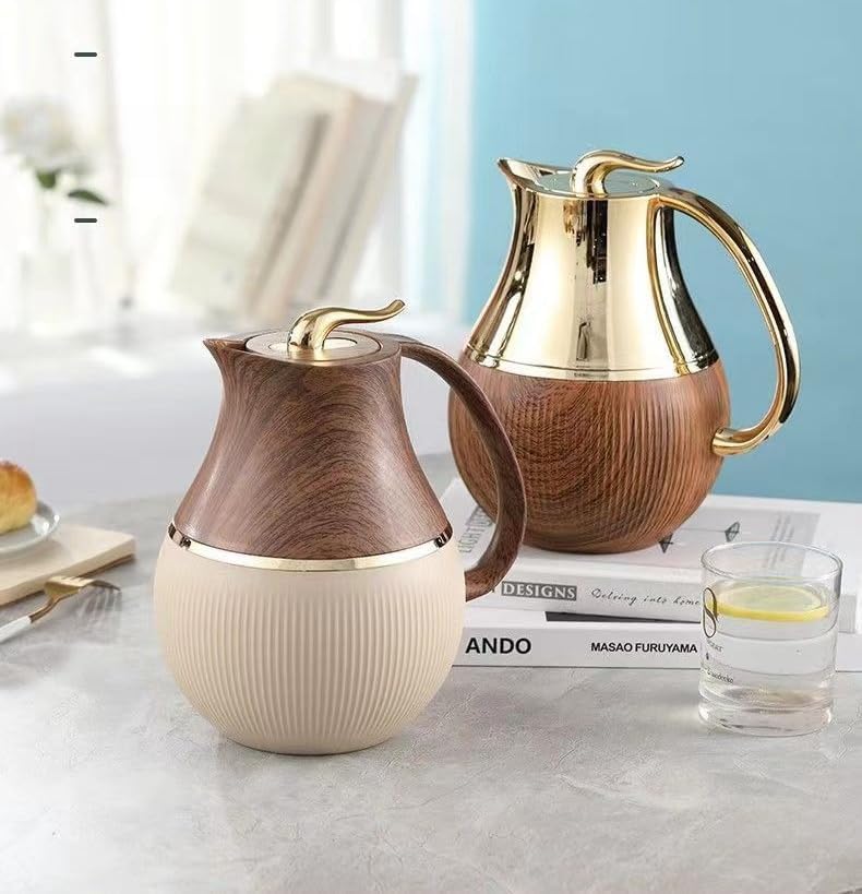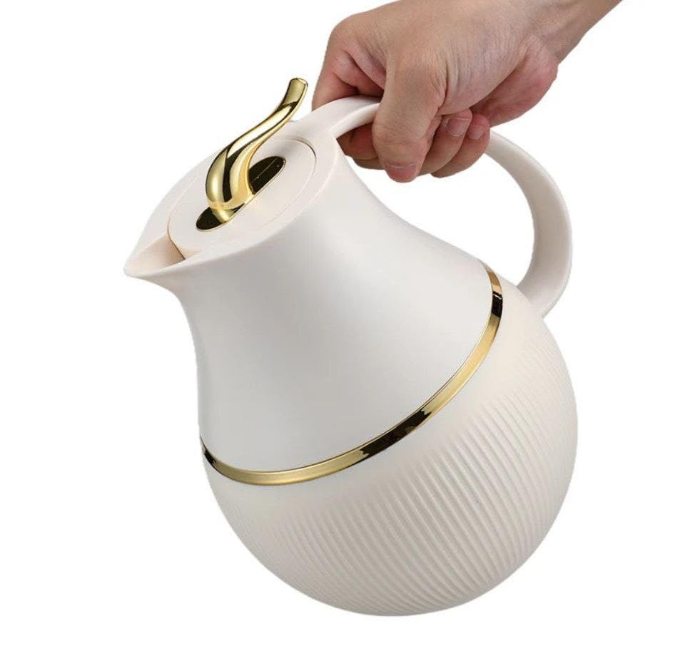 AREXOL - ترمس حراري بسعة 1 لتر مع جزء داخلي زجاجي وغطاء محكم الغلق للمشروبات الساخنة والباردة، كوب انيق وعملي للاستخدام اليومي