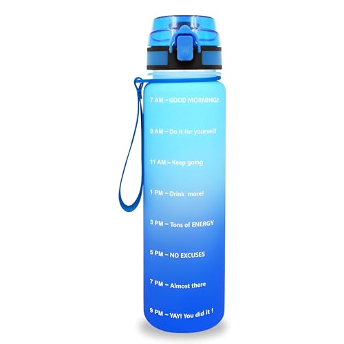 - This motivational water bottle is designed to keep you hydrated all day long and features time markings that encourage you to drink at regular intervals. It's perfect for staying on track to achieve your hydration goals, whether you're in the office, outdoors or going to the gym.