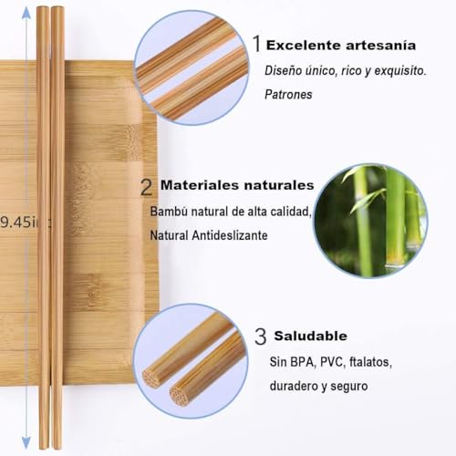 Generic - 1 Pair Bamboo Chopsticks – Reusable Natural Material, Classic Chinese Design, 9.8 Inch Length for Daily Meals, Noodles, Rice and Table Use