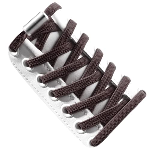 Proxima Direct - (1 Pair) Elastic No Tie Shoelaces, Proxima Direct Semicircle Shoe Laces Quick Lazy Metal Lock Laces Shoe Strings, System With Elastic Shoe Laces - One Size Fits All Kids & Adult, Elderly (Dark Brown)