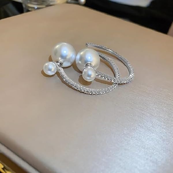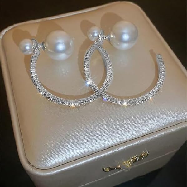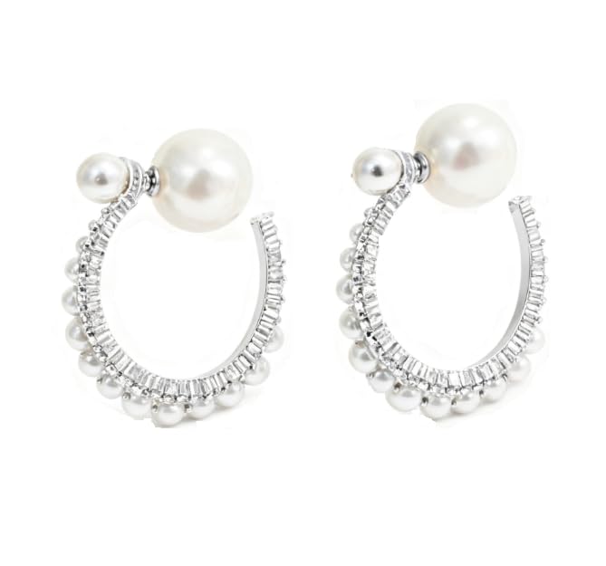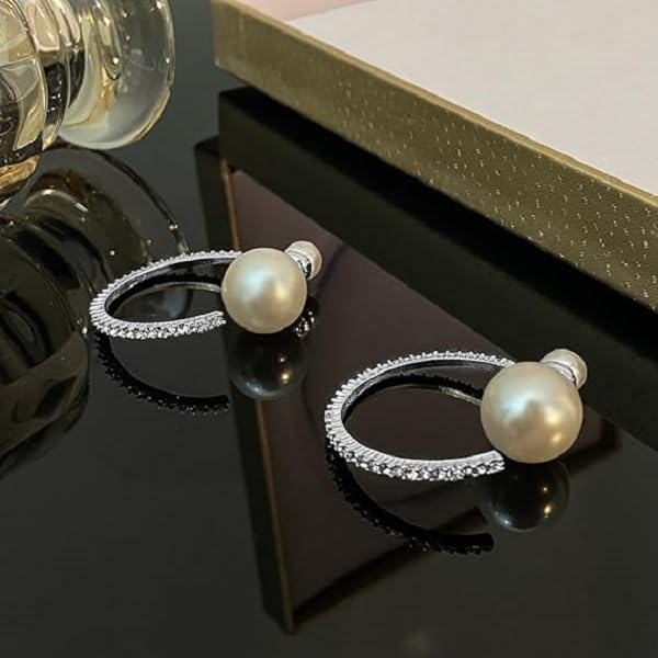 fashion mania - 1 pair Large Pearl Rhinestone Crystal Hoop Earrings for Women Teen Girls,Silver Cubic Zirconia Statement Hoop Earrings Party Holiday Jewelry Gifts