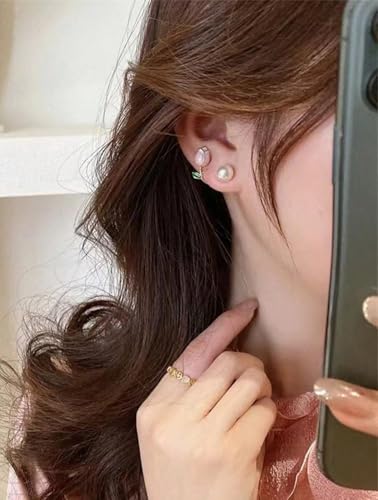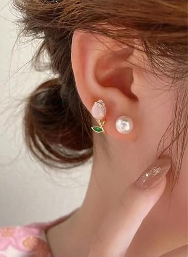 Generic - 1 Pair Tulip Flower Pearl Stud Earrings