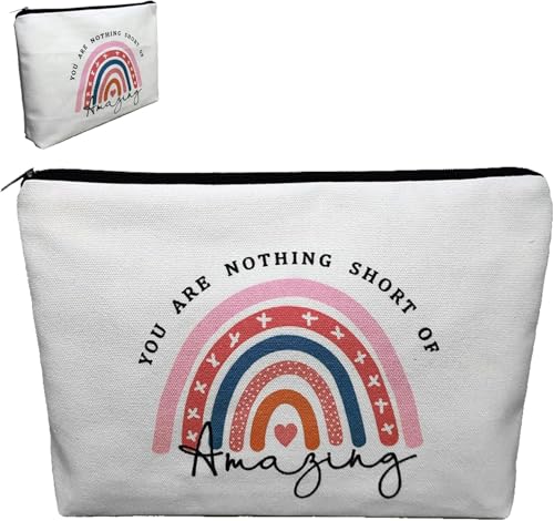 Generic - شنطة مكياج، شنط مستحضرات تجميل بألوان قوس قزح صغيرة مضحكة للنساء، قطعة واحدة، 25 × 17 × 5 سم