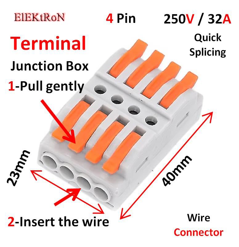 - 1 x 4 Pin Quick Use Wire Connector - Mini Fast Terminal 4 Pin Quick Multi circuit Splicing Butt Wire Connector 250V 32A Home Spring Splicing Push arduino Junction Box