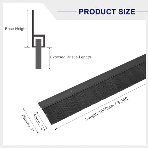 - Vacuum seal bottom brush, aluminum board with dust-proof tape and PP bristles for weather and air insulation Length of pieces 1 meter