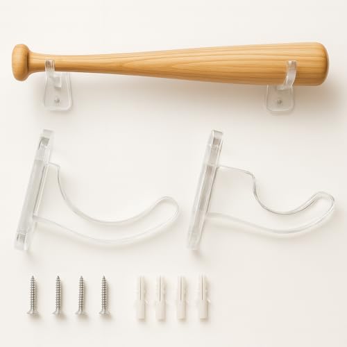 - 【Complete Package】– Ready to Display. 2-Piece Set – Holds bats securely at both ends (screws & instructions included).Multi-Sport Use – Also fits lacrosse sticks, jerseys, or similar-sized items. (ATTENTION: Wall mount only, Baseball bat is NOT included.)