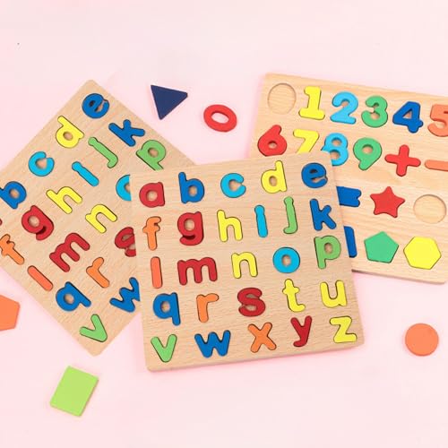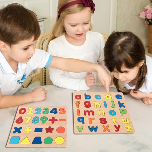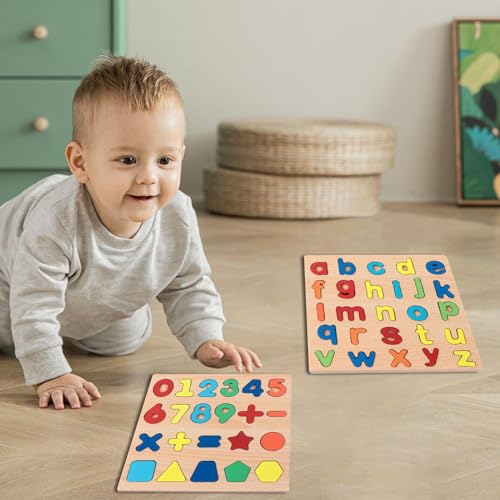 CVDYWDJIE - 1 Set of Abc Letters Puzzle Tablets and 1 Set of Puzzle Tablets with Numbers, Puzzle Toys, Wooden Educational Toys, Early Childhood Educational Toys