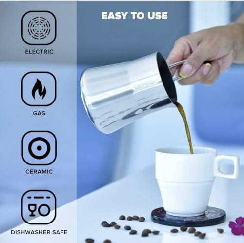 Generic - كنكة قهوه تركي استانلس استيل صغيره 10/18 ساده تركي صنع واحد قطعه سعة (190مل, كوب)