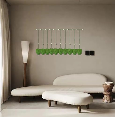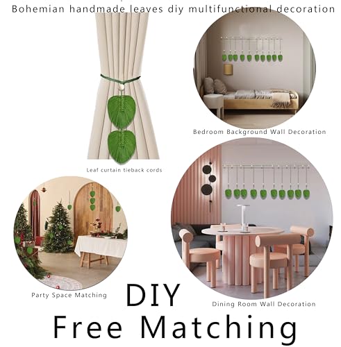 M-dazzling - 10 Handmade Leaf Wall Hanging Decor,Handmade Sage Green Leaf Tapestry,Hand Knitting Leaf Curtain Holdbacks ,DIY Boho Art Nursery Living Room Bedroom Backdrop and Wedding Party Chic Decor (Green)