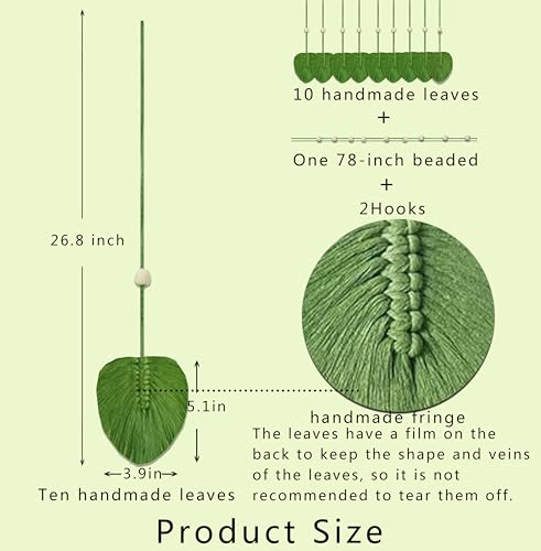 - Leaf Size:L 27 inches xW 5.1 inches . Since the tassels are hand-woven items, there may be a 1-2 inch variance between them. Tassels may curl during shipping, you can iron them to straighten them out by gently combing the tassels and hanging them for a few days to allow them to unfurl naturally, you will get a more beautiful wall hanging. You will get a more beautiful wall hanging. The leaves have a film on the back to keep the shape and veins of the leaves, so it is not recommended to tear them off.