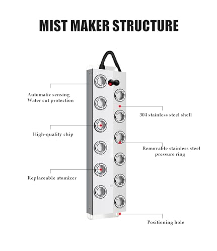 LWCHUANG - 10-head ultrasonic atomizer, 7000 ml/h, ultrasonic atomizer humidifier with float, with 350W power adapter, for vegetable preservation, landscape
