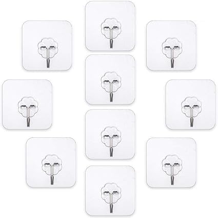 - COMPLETE KIT: 10 White Plastic Self-Adhesive Hangers for Kitchen and Bathroom Use