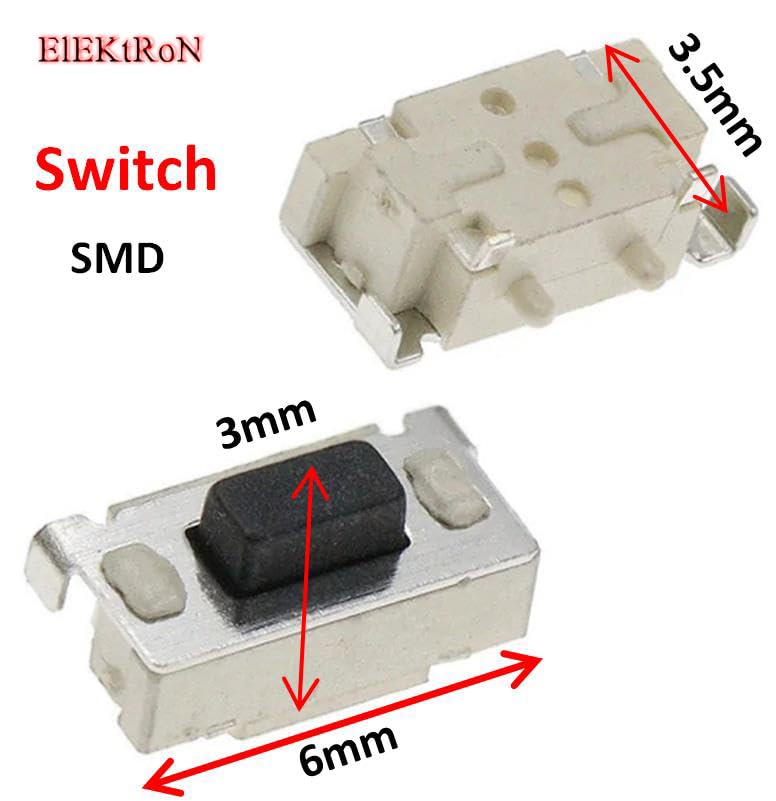 Generic - عدد 10 قطع من زر باور - Micro High performance Durable Tactile Push Button Momentary Switch DC12V 50mA Tact Touch (6mm x 3.5mm x 3mm) For MP3 MP4 Tablet PC Bluetooth Headset Remote Control SMD