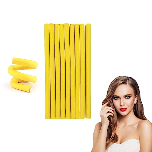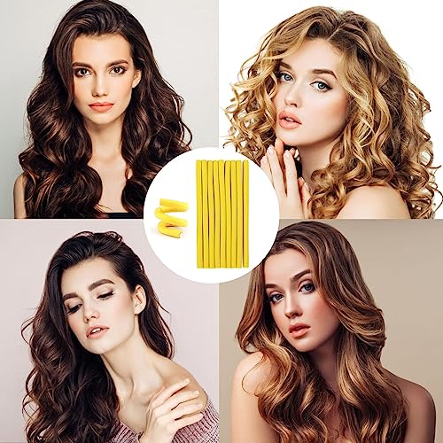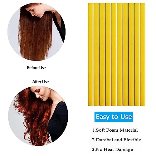 JEOPKO - 10 Pcs Bendy Foam Curling Rods - Heatless Curlers for Long & Short Hair, DIY Salon Styling Tools (Yellow)