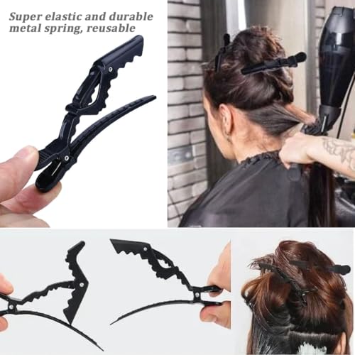 ZOWEXIQ - 10 Pcs Black Crocodile Hair Clips, Crocodile Hair Clips, Hairdressing Barrettes, Black Non-Slip Crocodile Clips Professional Hair Clips
