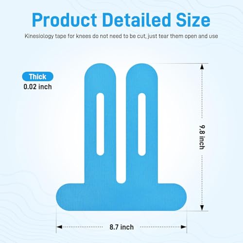 fashion mania - شريط لاصق كينيزيولوجي مقصوص مسبقا للركب - لتخفيف الآلام، مقاوم للماء ومرن، يدعم العضلات والمفاصل (أزرق)، 10 قطع