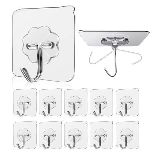 Generic - 10 Pcs Stainless Steel Hooks Self Adhesive Wall Hooks Heavy Duty Nail Free Drilling Hooks for Kitchen (Hanging Hook, Clear)