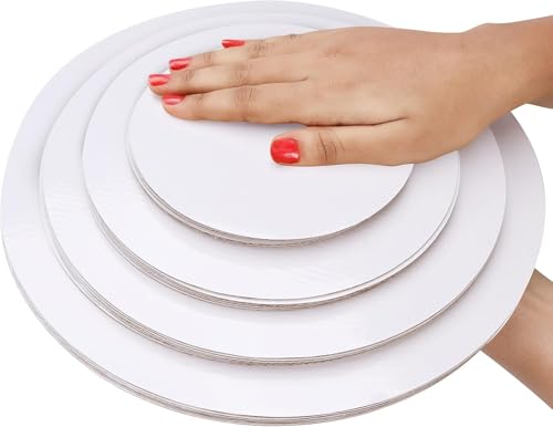 - 10 Pcs White Cardboard Cake Topper Set, Non Stick Round Cake Dessert Plates for Christmas Wedding Birthday Anniversary Meeting Round 28 Cake Serving